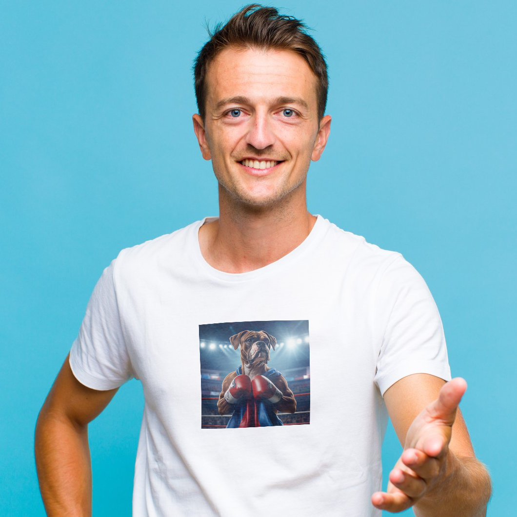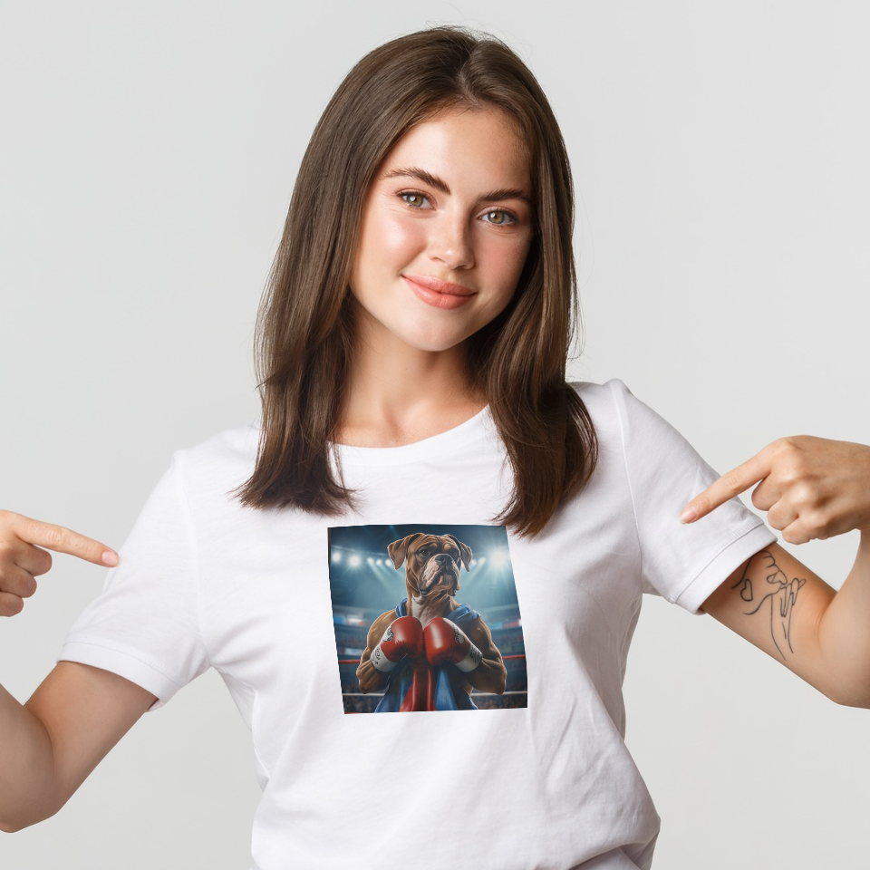This Boxer is ready to rumble - gloves on and tail wagging! Whether it’s in the ring or on your tee, this pup packs a punch of charm and determination. Perfect for anyone who loves a knockout combination of dogs and fun!