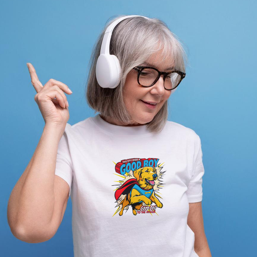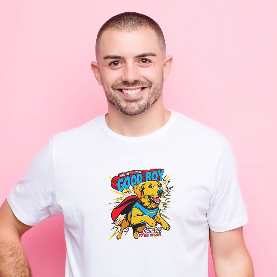 A golden retriever with a cape and a mission. Fluff-powered, zoomie-fueled, and here to save the day. Because when things get ruff, only one hero answers the call. The city’s in good paws.